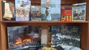 На виставці представлені документи з фондів бібліотеки, які висвітлюють події, що відбувалися на буремному Майдані, спогади про «лицарів світла та добра», а також поетичні та прозові твори. Небесна Сотня стала символом незламності українського духу. Наш спільний обов’язок – берегти пам’ять про їхній подвиг.
